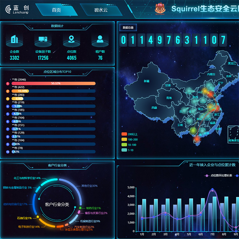 餐飲油煙在線監(jiān)控、柴油車OBD遠程在線監(jiān)控、企業(yè)安全生產(chǎn)信息化等系統(tǒng)于一體,通過AI數(shù)據(jù)模型對海量生態(tài)安全數(shù)據(jù)進行挖掘,為生態(tài)環(huán)境監(jiān)管部門、應(yīng)急管理部門、